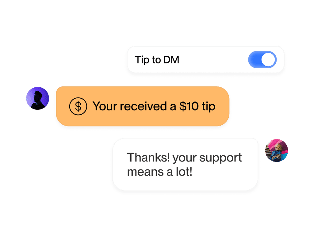Stay close to your audience through real conversations. Share updates, answer questions and get rewarded with tips along the way.