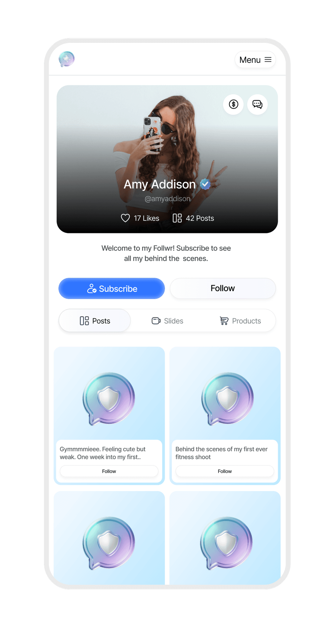 Follwr is the best place to build community with your biggest fans, share exclusive work and turn your passion into a predictable stream of income